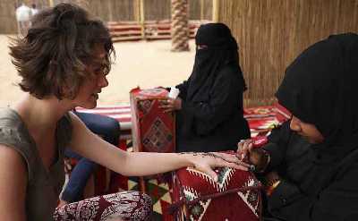 Tiempo para 'paseo en barco por el desierto' ... Dé un paseo en camello por las instalaciones del campamento y, según la hora y la suerte, vea el atardecer en el desierto desde una alta duna. Libre en el tiempo libre ... De vuelta en el campamento Al Khayma, pase el tiempo probando fumar Shisha, pintar con henna. Póngase ropa árabe local y pose para fotos con Falcon.